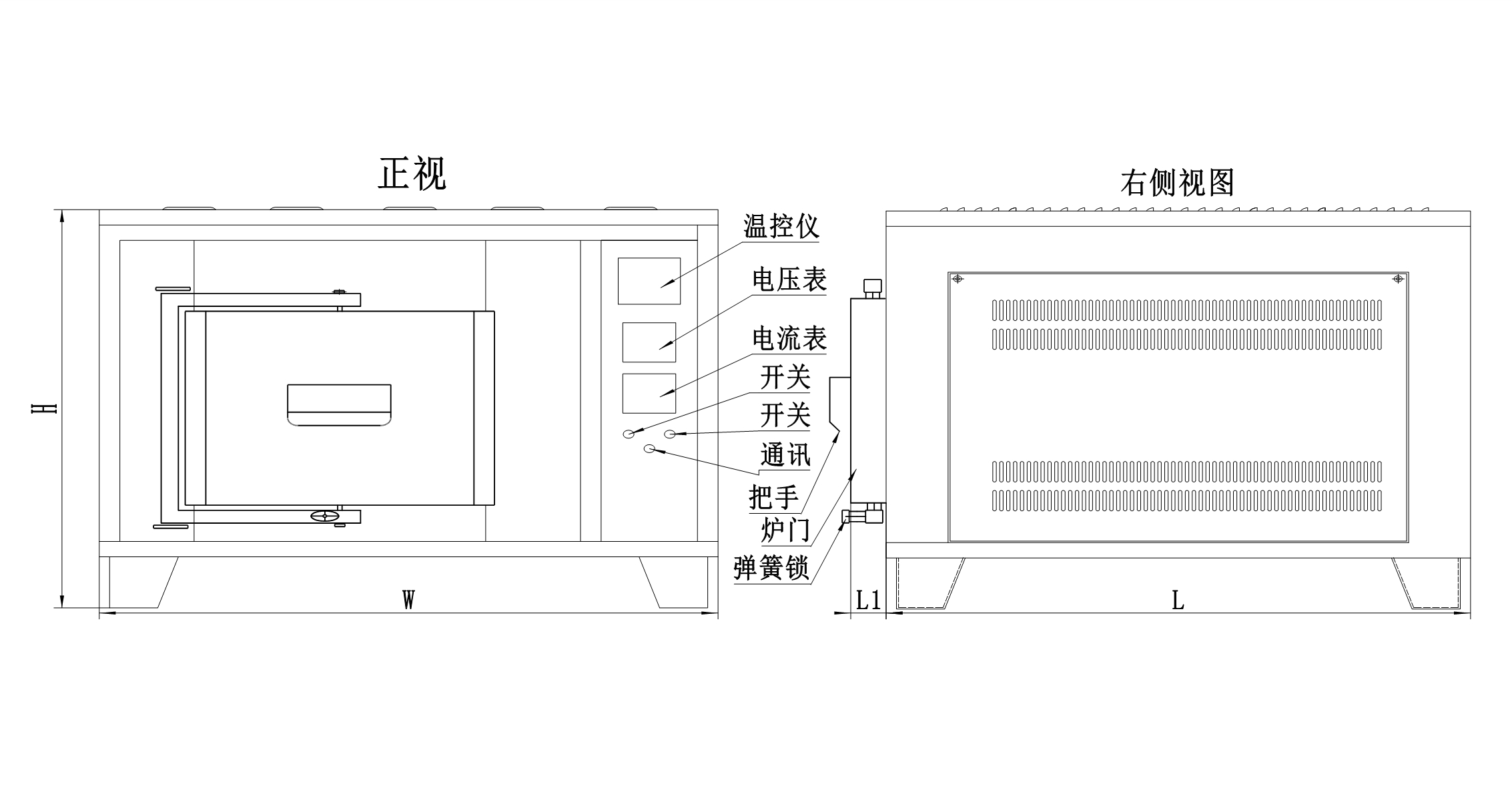 | 爐門開啟方式 | 爐門開啟方式為軸向180度側(cè)開,爐門可360度旋轉(zhuǎn),避免了高溫取料時(shí)爐門內(nèi)壁烤到手臂;爐門鎖緊位于爐門下方采用不銹鋼彈簧鎖,可鎖緊,彈簧的彈性吸收了耐火材料膨脹現(xiàn)象,起到了耐火材料熱脹冷縮的自由伸縮并密封。 |