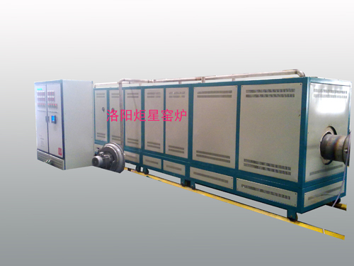 3、爐體結(jié)構(gòu),電爐外觀采用高溫噴塑,耐溫、耐氧化、耐酸堿;雙色搭配是外觀大方、美觀;外殼采用國標(biāo)角鋼、冷軋板焊接而成,雙層外殼,內(nèi)外隔離,風(fēng)冷結(jié)構(gòu),外表溫度不大于40℃;爐體采用國標(biāo)角鋼、冷軋板精細(xì)焊接而成,再用車床精細(xì)加工,起到好的密封效果;每段爐體下方安裝有移動輪,移動輪在軌道上行駛電爐直線運(yùn)動,軌道(共五段)總長15mm,可拆卸;爐體連接有螺絲連接和輔助搭扣鎖;在電爐爐體的第一段和尾段外安裝有導(dǎo)向軸承,方便爐管的安裝,爐體結(jié)構(gòu)考慮將來加長設(shè)計(jì),為后期電爐改造預(yù)留設(shè)計(jì)。