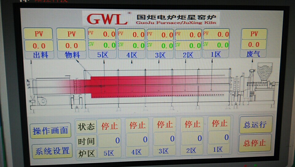 高溫回轉(zhuǎn)電窯爐 | GWL-1000SSR-D500-15000 | 15000×D500(壁厚10mm) | 8.5米 | 380 | 180(自調(diào)整) |